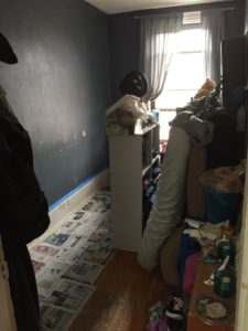 The room was still tiny, and the futon still took up the whole room when it was open, but at least when it was in there lengthwise the mattress wasn’t squished up at the ends, which was very uncomfortable. The room was looking better already and I was starting to feel more positive about it. Once my things were set up better, I felt like maybe it would be more livable. It definitely was a DRASTIC difference having bright paint on the walls!